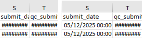 Note on Dates: The columns submit_date and qc_submit_date may sometimes display as "######". If this occurs, simply make the column wider to reveal the full date.